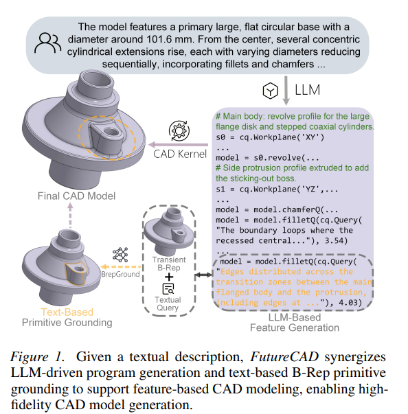 6. Jiahao Li, Qingwang Zhang, Qiuyu Chen, Guozhan Qiu, Yunzhong Lou, Xiangdong Zhou. Towards High-Fidelity CAD Generation via LLM-Driven Program Generation and Text-Based B-Rep Primitive Grounding.