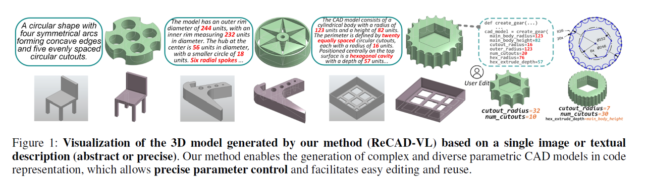 1. Jiahao Li, Yushen Luo, Yunzhong Lou, Xiangdong Zhou. ReCAD: Reinforcement Learning Enhanced Parametric CAD Model Generation with Vision-Language Models, The 40th Annual AAAI Conference on Artificial Intelligence (AAAI 2026), Jan, 2026, Singapore, Accepted for Oral Presentation
